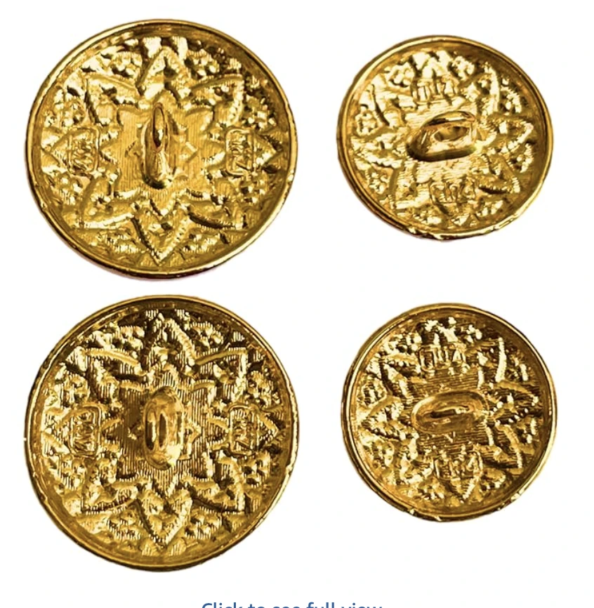 This unique rare and Attractive metal button is suitable for different types of dresses like suit buttons, blazer buttons, coat buttons, jacket buttons, sherwani buttons, Bandhgala buttons, achkans, shirt buttons, pant buttons, buttons for sweaters, dresses,indo-western, sari blouse, Kurti, tops & tunics, jeans, denim, cardigans, long jackets and many more.