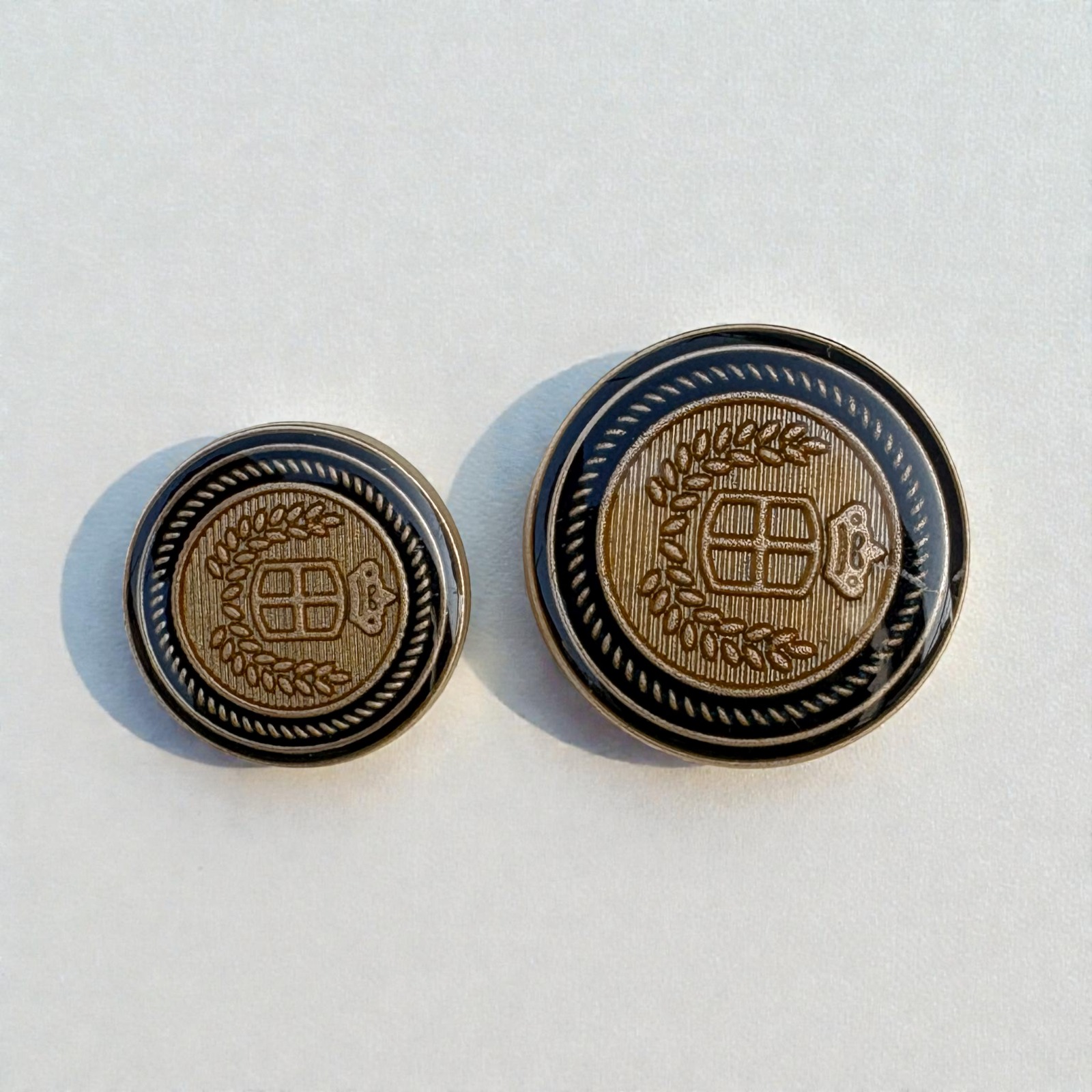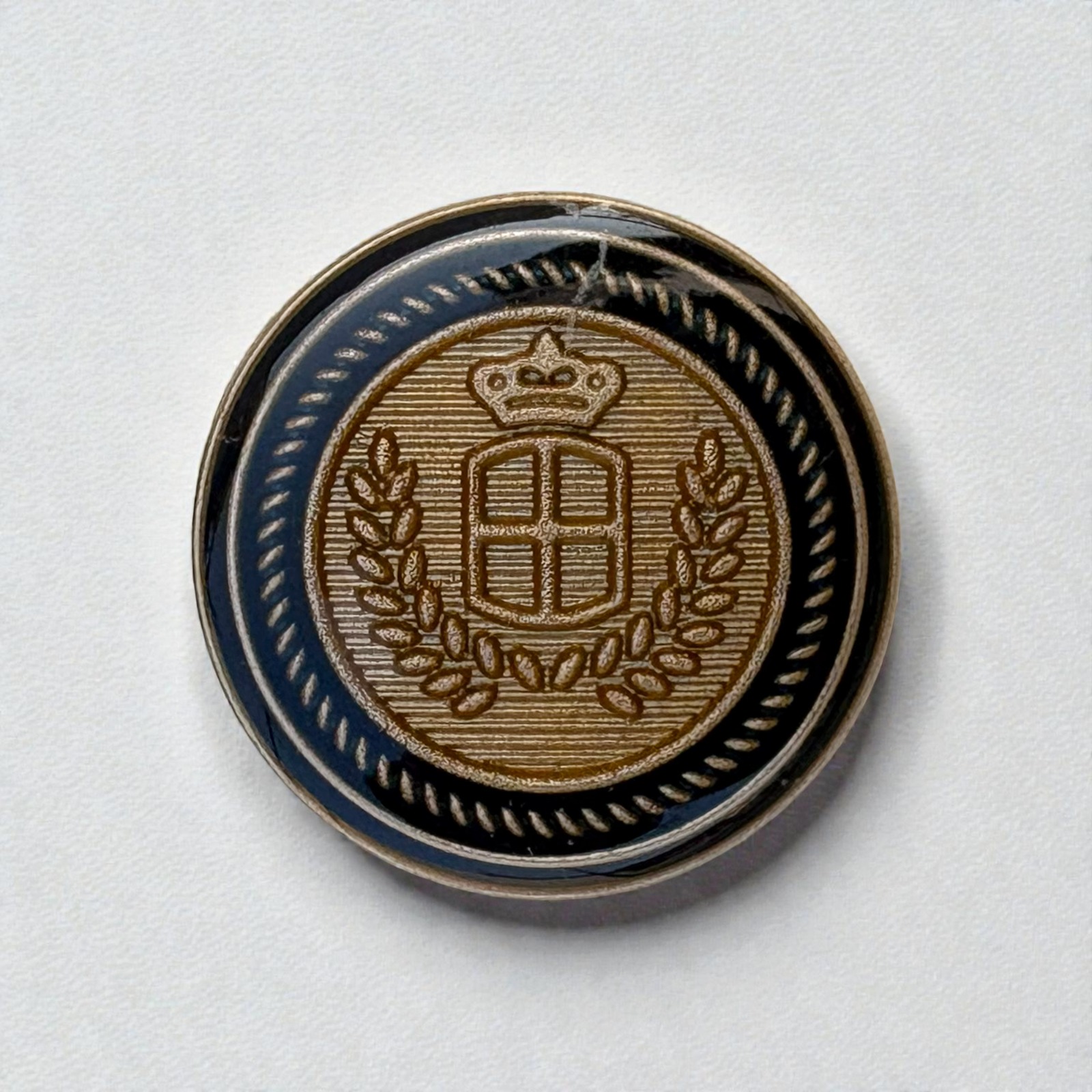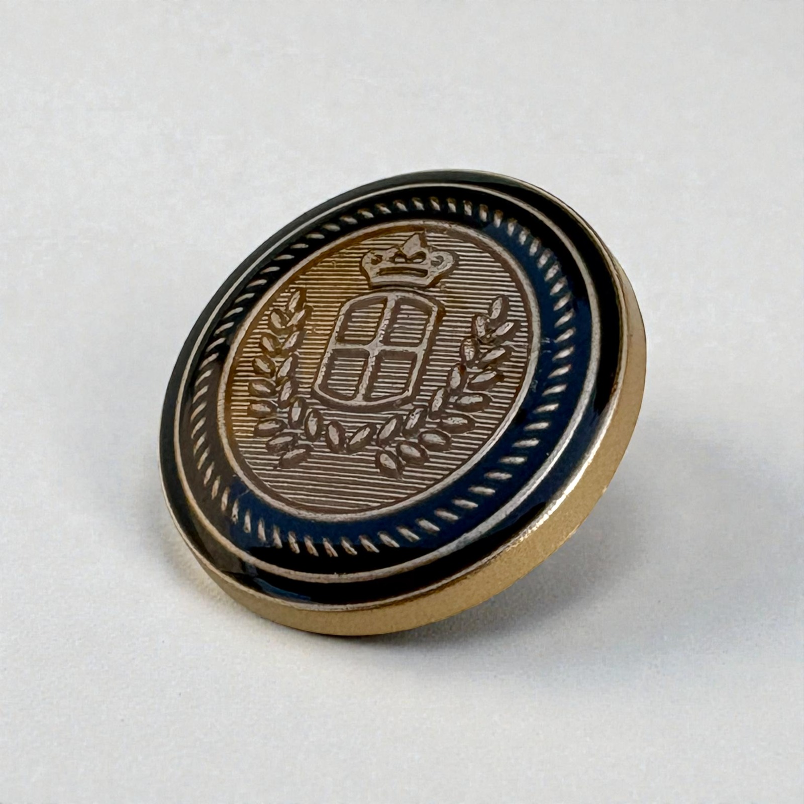 Two-Tone Crown Crest Metal Shank Button – Laurel Shield Design, Antique Finish